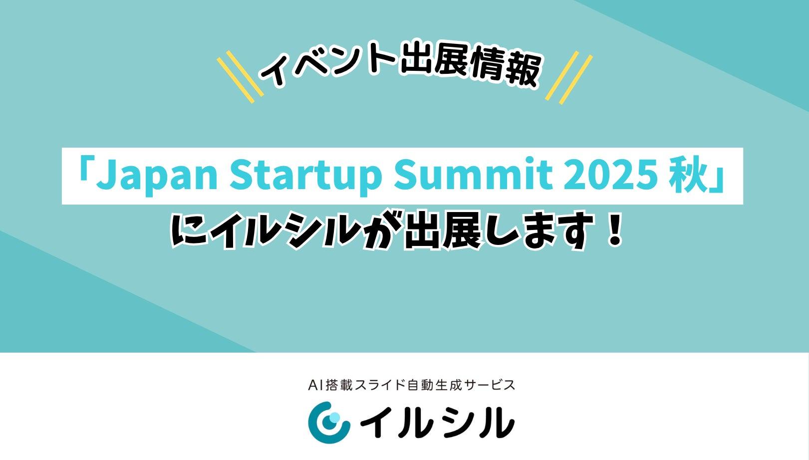 AI搭載スライド自動生成サービス「イルシル」を提供する株式会社イルシルは、2025年10月22日(水)~24日(金)に幕張メッセで開催される「Japan Startup Summit 2025 秋」に出展いたします。