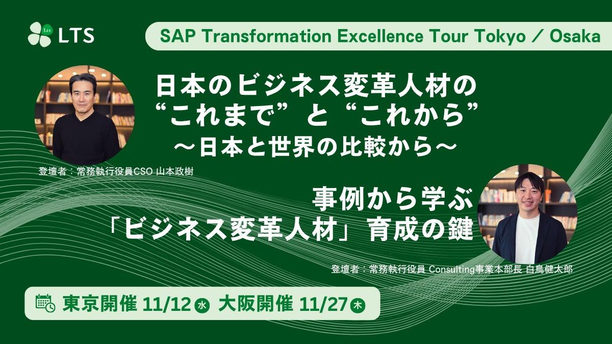 株式会社エル・ティー・エス(以下、LTS)は、SAPジャパンが主催する「SAP Transformation Excellence Tour Tokyo」と「SAP Transformation Excellence Tour Osaka」に登壇することを発表しました。