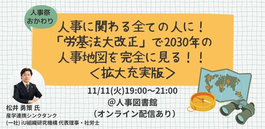 株式会社Trustyyle(本社:東京都中央区、代表取締役:吉田洋介)は、運営するコミュニティ「人事図書館」にて、2025年11月11日(火)に「人事に関わる全ての人に!『労基法大改正』で2030年の人事地図を完全に見る!!<拡大充実版>」を開催します。
