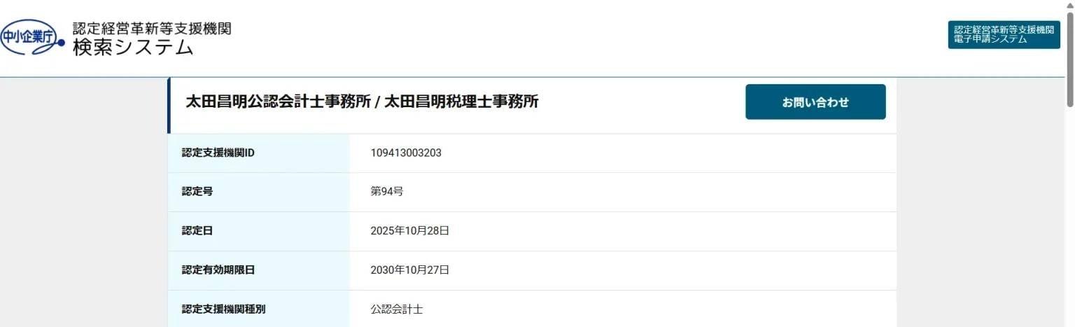ARMS会計株式会社のグループである太田昌明公認会計士事務所が、2025年10月28日付で中小企業庁より「認定経営革新等支援機関」としての認定を取得しました。