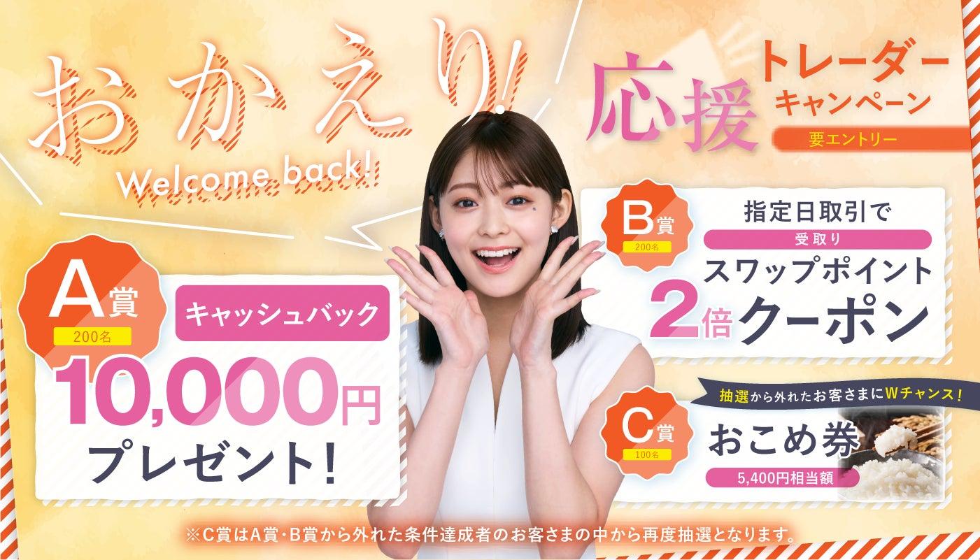 トレーダーの心を掴むようなウェルカムバックの企画は良いアプローチだと思います。お客さまの取り戻しを積極的に狙っていることがうかがえます。