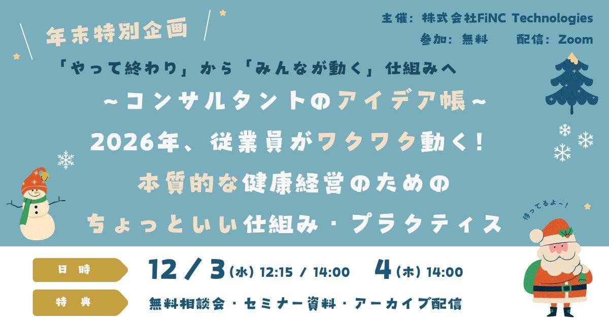 健康経営セミナー:~コンサルタントのアイデア帳~2026年、従業員がワクワク動く!本質的な健康経営のためのちょっといい仕組み・プラクティス 12月3日/4日 開催!についてまとめました