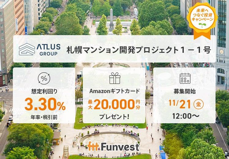 貸付型クラウドファンディング「Funvest」は、11月21日より新ファンド「アトラスグループ 札幌マンション開発プロジェクト1-1号」の募集を開始します。