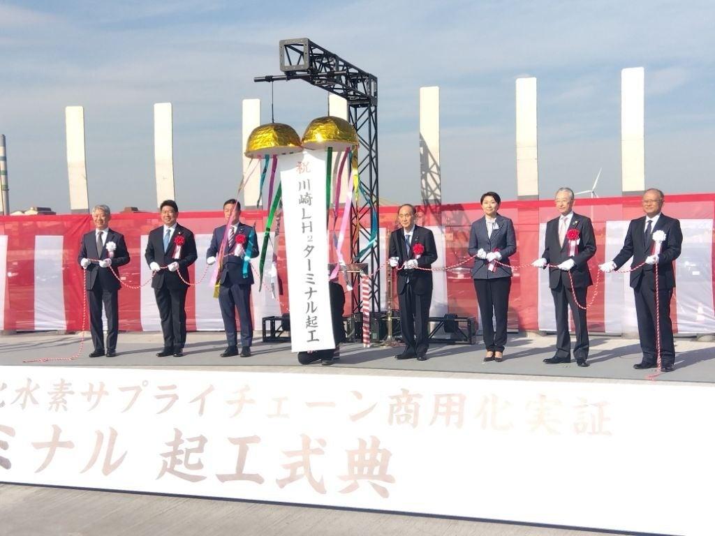 川崎市の扇島地区に、国際水素サプライチェーンの液化水素基地の起工式が2022年11月27日に行われた。