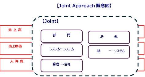 Joint Approachでは、P/Lの大半を占める「売上高・売上原価・人件費」という「キー・プロセス」に注目し、プロセス間の「Joint」(つなぎ目)に着目して改善活動を行います。