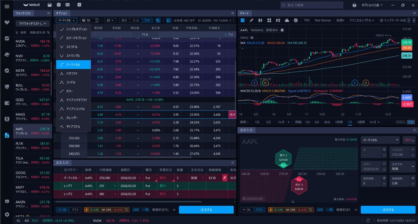 デジタル投資プラットフォーム大手、米国Webull Corporationの日本拠点であるウィブル証券株式会社は、2025年12月XX日より、PCアプリでも、米国株オプションの「ストラテジー取引(スプレッド取引)」に対応したことを発表しました。