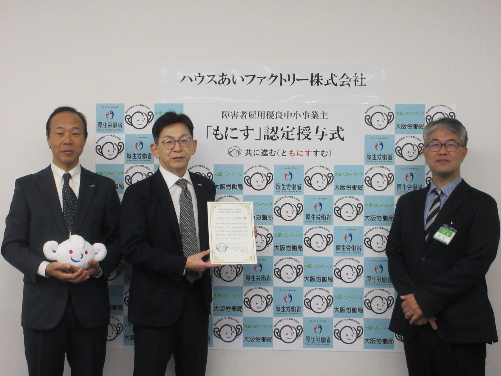 - ハウスあいファクトリーが厚生労働省の「もにす認定」を取得