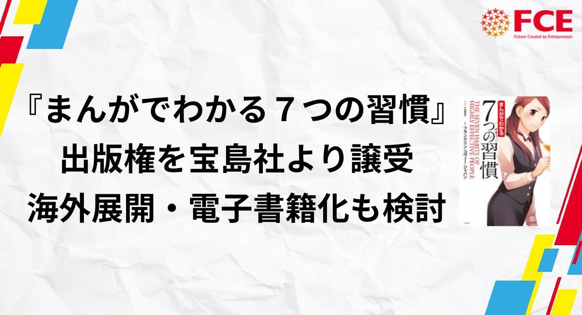 株式会社FCE(以下FCE)は、株式会社宝島社が保有する『まんがでわかる7つの習慣』シリーズ全5巻の出版権を譲り受けたことを発表しました。