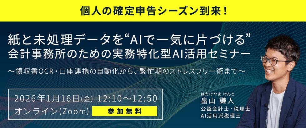 株式会社クリーク・アンド・リバー社の会計分野の子会社であるジャスネットコミュニケーションズ株式会社は、個人の確定申告シーズンを目前に控えた2026年1月16日(金)に、会計事務所の実務担当者を対象としたオンラインセミナー「紙と未処理データを”AIで一気に片づける” 会計事務所のための実務特化型AI活用セミナー」を開催します。
