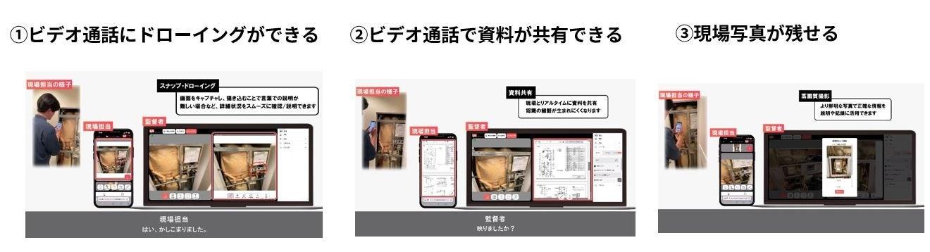 「LIVEアシスト」は、ZoomなどのオンラインMTGツールに様々な業務支援機能を加え、業務向けに特化させたビデオ遠隔サービスです。特に、現場やお客様とのリアルタイムでの詳細確認やコミュニケーション支援に特化し、ドローイング機能などの各種機能で遠隔コミュニケーションの質を劇的に向上させることできます。