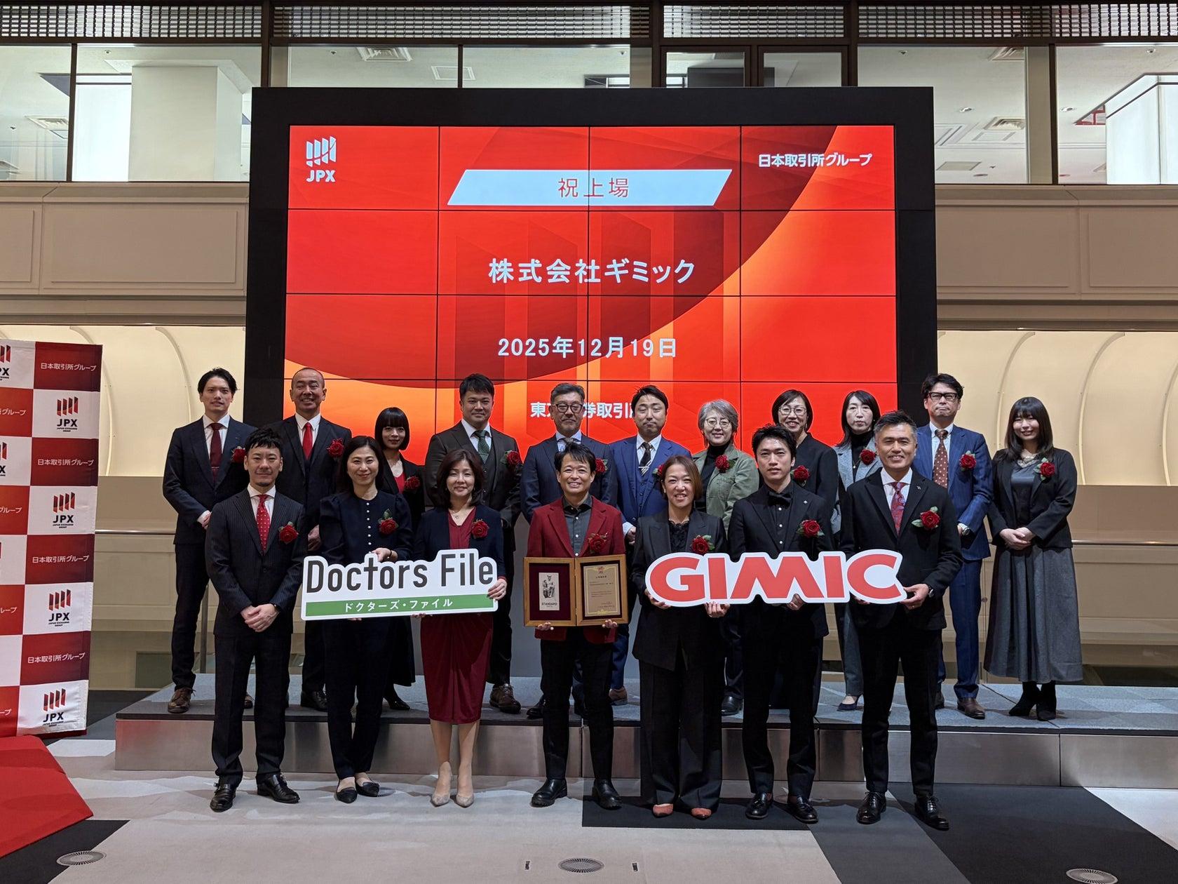 日本最大規模の医療情報サイト「ドクターズ・ファイル」をはじめ、医療特化型プラットフォーム事業を展開する株式会社ギミックは、2025年12月19日に東京証券取引所スタンダード市場に新規上場しました。