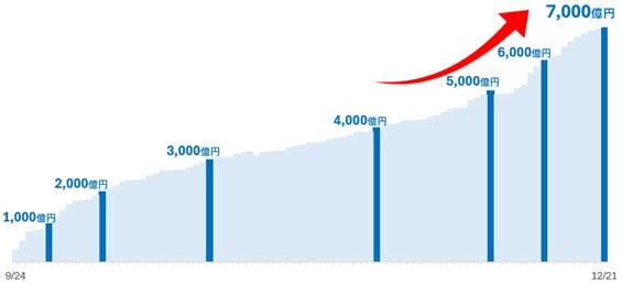 SBIハイパー預金は、2025年9月23日にSBI証券との連携サービスとして開始されたもので、サービス開始以来多くのお客様に利用されています。特に12月10日から始まった「目指せ1兆円!金利最大10倍キャンペーン」により、12月12日の6,000億円突破から9日間で1,000億円以上の残高増加となりました。