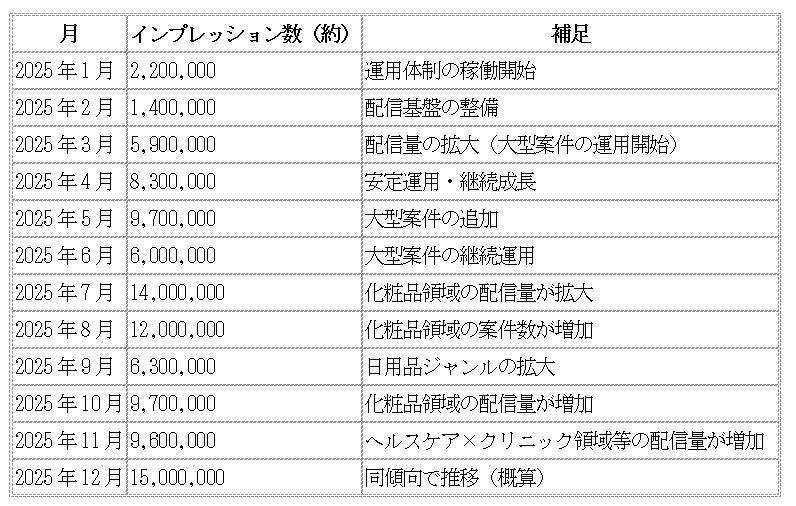- 2025年1月の運用体制稼働以降、複数媒体での配信拡大が進行