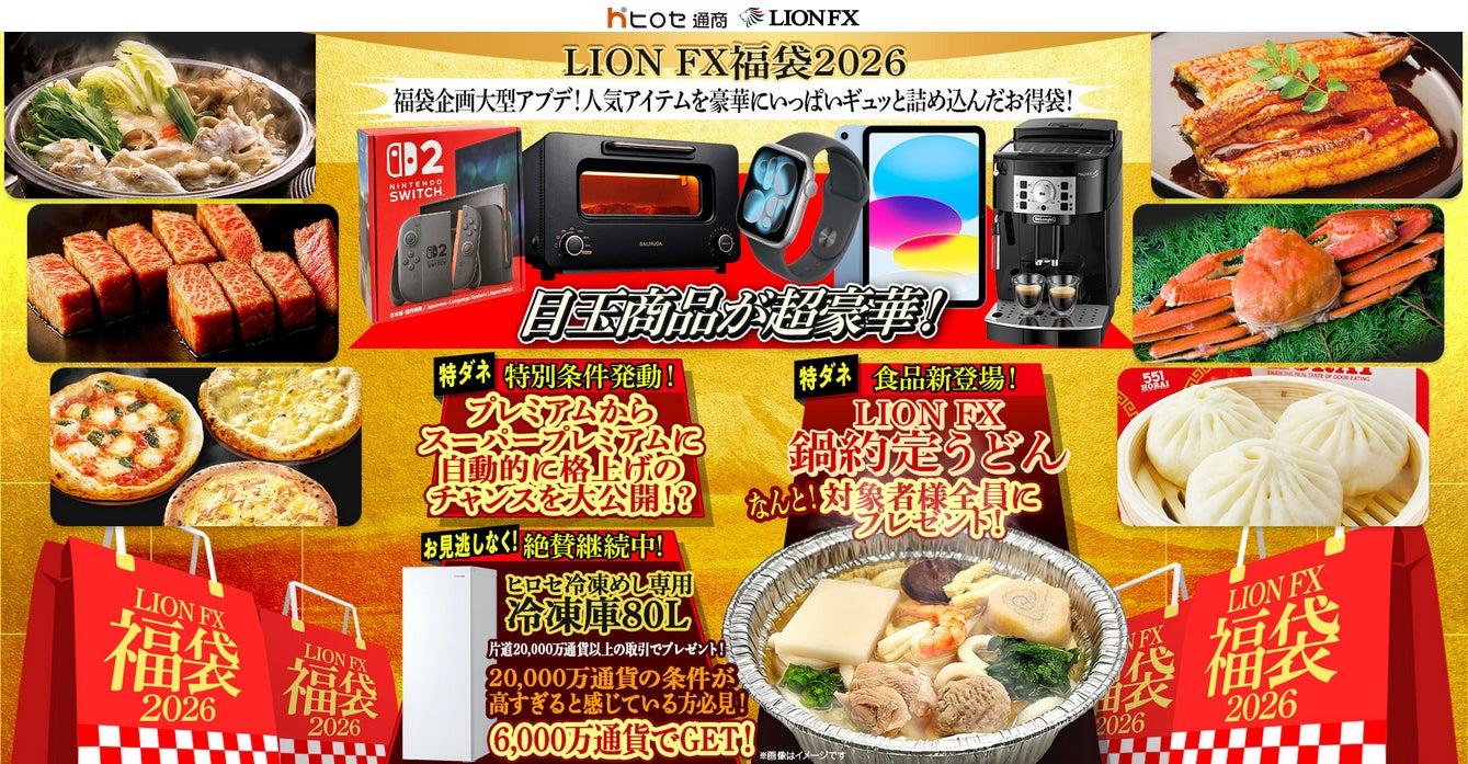 LION FX福袋2026:ヒロセ通商株式会社、人気アイテムを豪華にいっぱいギュッと詰め込んだお得袋を実施!についてまとめました
