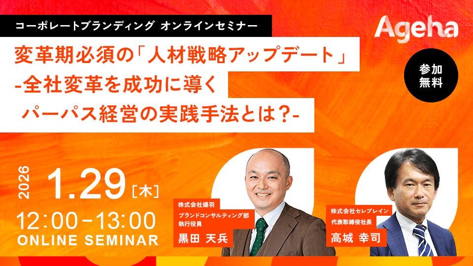 株式会社揚羽は、2026年1月29日(木)にオンラインセミナー「変革期必須の『人材戦略アップデート』-全社変革を成功に導くパーパス経営の実践手法とは?-」を開催します。
