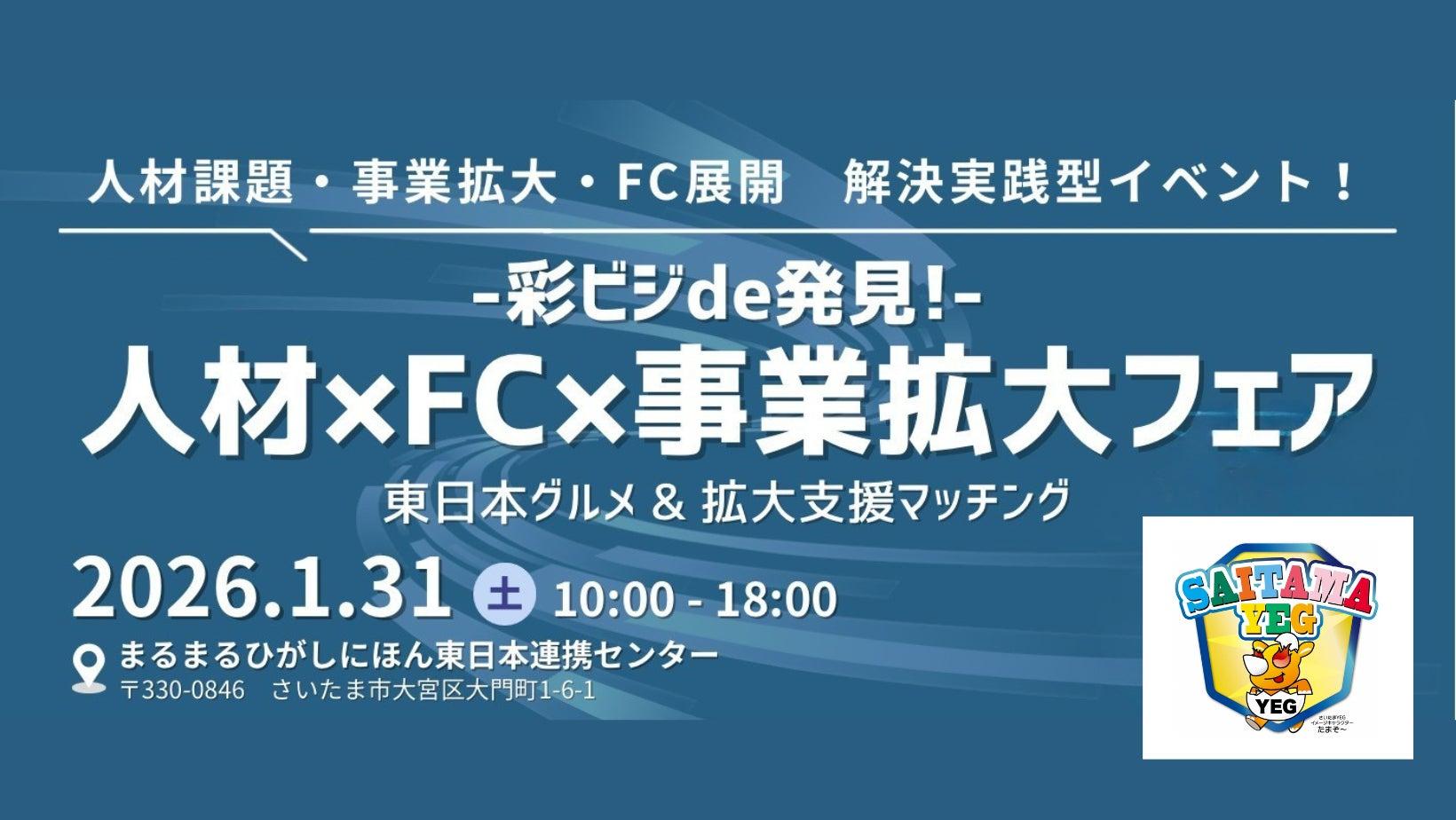 さいたま商工会議所青年部は、令和8年1月31日(土)に大宮駅東口「まるまるひがしにほん(東日本連携センター)」にて、中小企業向けの広域ビジネスマッチング「彩ビジde発見!人材×FC×事業拡大フェア」を開催します。