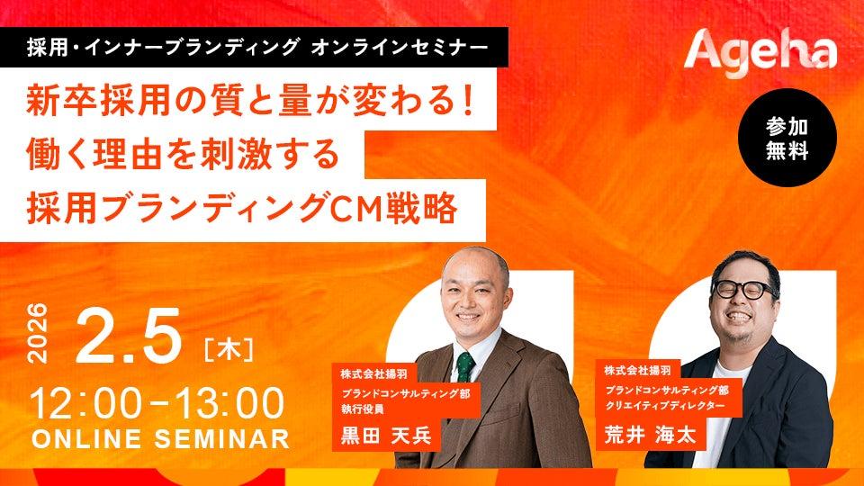 株式会社揚羽は、2026年2月5日(木)に「新卒採用の質と量が変わる!働く理由を刺激する採用ブランディングCM戦略」と題したオンラインセミナーを開催します。