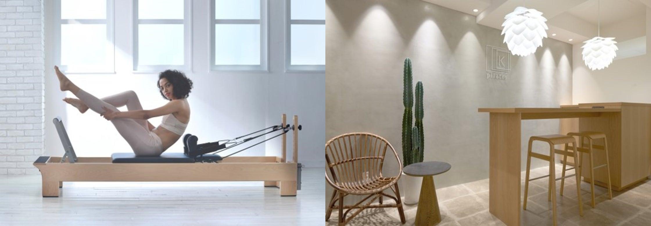 pilates Kは「30歳からの本気ボディメイク」をコンセプトに、ピラティス専用マシン「リフォーマー」を使用し、音楽に合わせながらグループレッスンを提供するスタジオ。