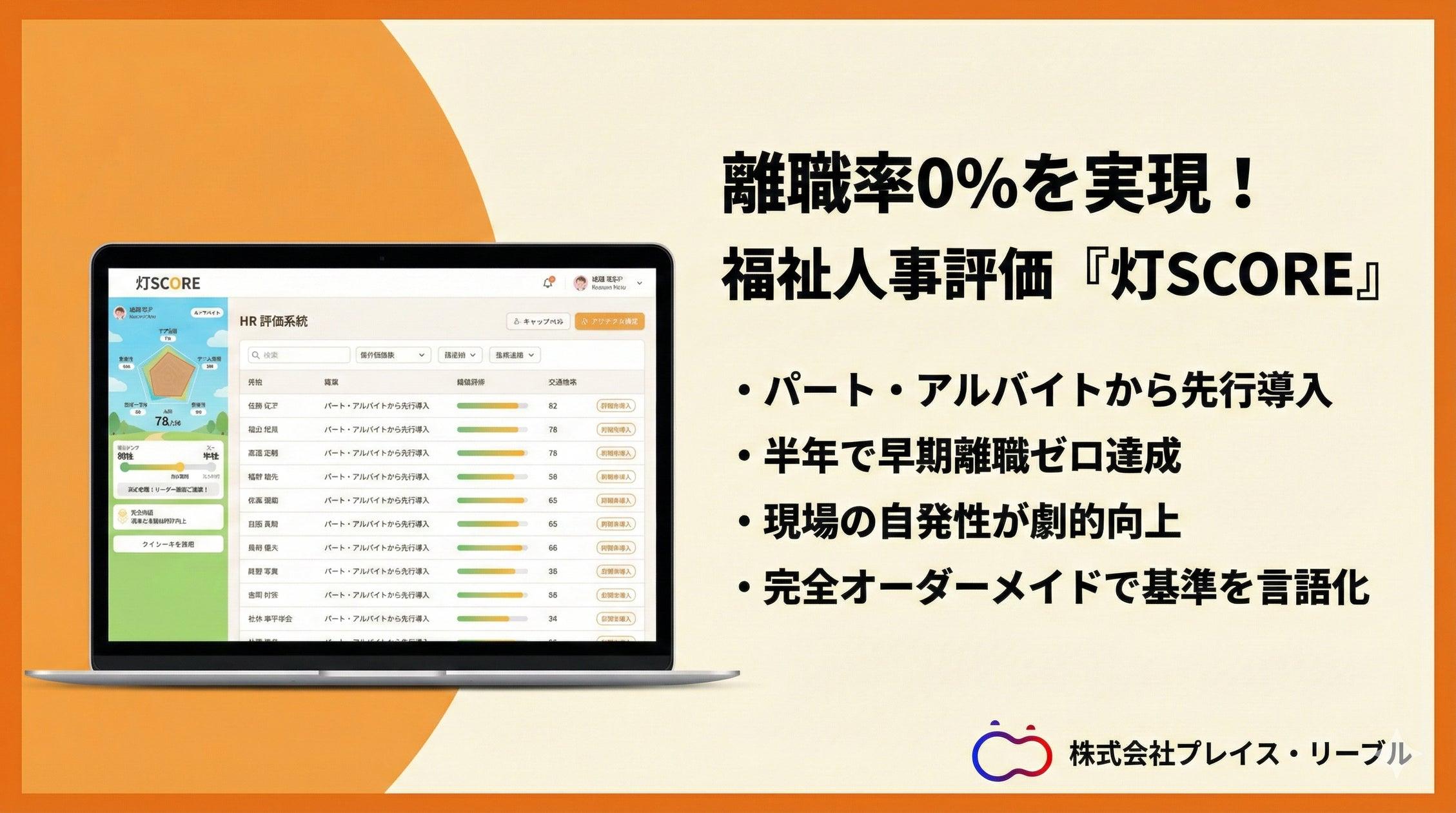 株式会社プレイス・リーブルは、自社の組織改革のために開発した福祉業界特化型の人事評価システム『灯SCORE(あかりスコア)』を、2026年1月23日より一般提供を開始しました。
