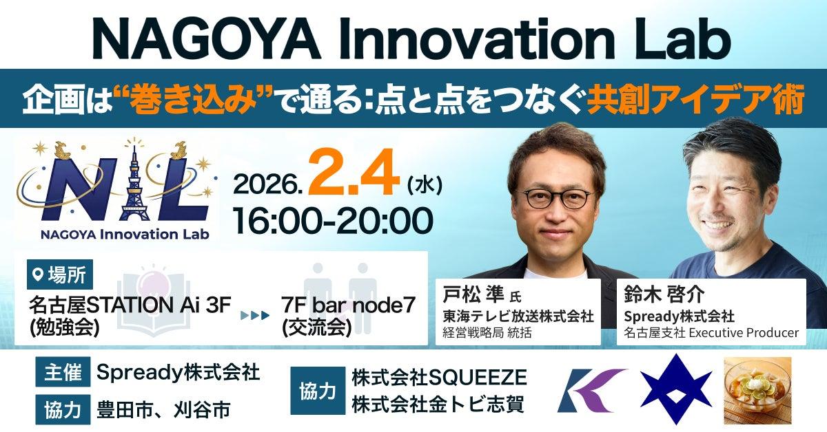 東海テレビ放送株式会社は、Spready株式会社と共に2026年2月4日(水)に、日本最大級のオープンイノベーション拠点「STATION Ai」にて、東海地域の新規事業担当者や挑戦者を対象とした月例イベント「NAGOYA Innovation Lab(NIL)」を開催します。