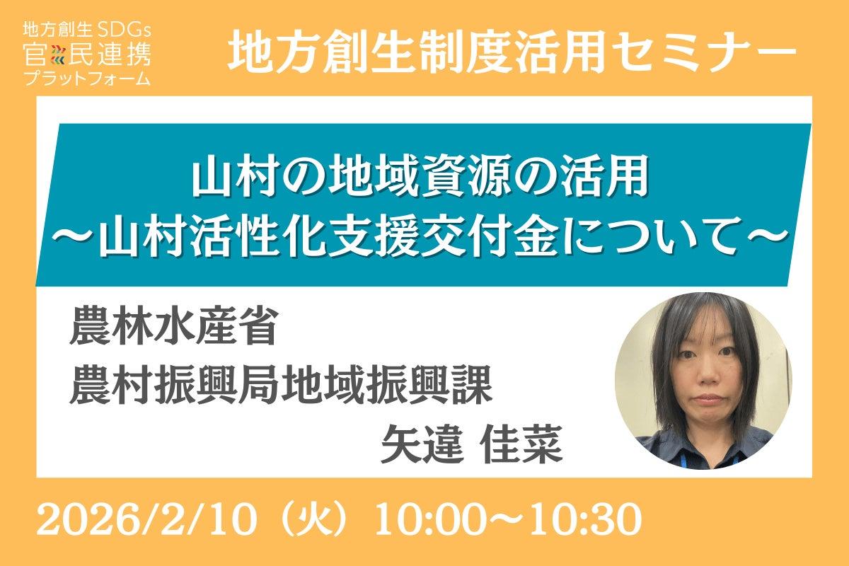 山村活性化支援交付金:農林水産省担当者登壇!2/10(火)「山村の地域資源の活用~山村活性化支援交付金について~」オンラインセミナー開催のお知らせについてまとめました