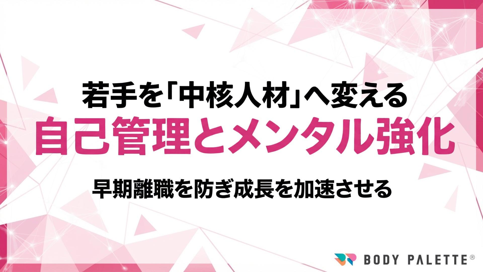 本プログラムは、若手社員の自己管理力とストレス対処を業務行動として標準化し、繁忙期や異動・評価局面の不調と早期離職を抑えながら、中核人材の成長を加速することが目的です。