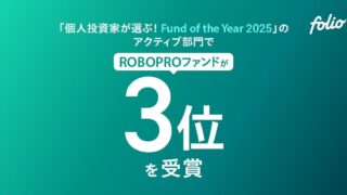 ROBOPROファンド:個人投資家が選ぶ! Fund of the Year 2025のアクティブ部門で第3位を受賞 ニュースの要約 「ROBOPROファンド」が「個人投資家が選ぶ! Fund of the Year 2025」のアクティブ部門で第3位を受賞 FOLIOが開発したAIを活用した「ROBOPRO」の運用戦略に基づき設定された「ROBOPR... ニュース: 2026.01.23 ニュース