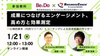 エンゲージメントを高める: 成果につなげるエンゲージメント、高め方と効果測定 ニュースの要約 株式会社Be&Do と B-Connect株式会社が共催するオンラインセミナーの開催 「心理的資本(内的リソース)」に注目し、組織の自走化を後押しするコーチングについて解説 エンゲージメントを高め、業績向上につなげる手... ニュース: 2026.01.16 ニュース