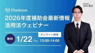 設備投資・成長戦略に直結する無料ウェビナー:【2026年度補助金 最新情報】1月22日開催 ニュースの要約 2026年度の補助金制度の大幅な変更点が発表される 設備投資や成長戦略につながる補助金の情報を丁寧に解説するウェビナーを開催 ウェビナーの登壇者は、補助金活用の専門家である株式会社プランベースの代表取締役概要株式会社プ... ニュース: 2026.01.14 ニュース