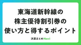 東海道新幹線の株主優待割引券の使い方と得するポイント はじめに東海旅客鉄道(JR東海)の株主優待は、株式投資家にとって魅力的なリターンの一つです。特に東海道新幹線をよく利用する投資家にとって、この優待制度は実質的な価値を生み出す仕組みとなっています。本記事では、JR東海の株主優待制度の詳細、活... 決算書: 2026.03.20 決算書