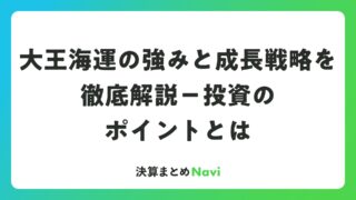 大王海運の強みと成長戦略を徹底解説-投資のポイントとは 大王海運株式会社は、海上輸送と陸上輸送を組み合わせた総合物流企業として、国内の物流ネットワークを強固に構築しています。株式投資家にとって、同社の安定した事業基盤と成長戦略は注目に値するポイントです。この記事では、大王海運の事業内容、財務実績... 決算書: 2026.03.21 決算書