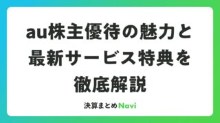 au株主優待の魅力と最新サービス特典を徹底解説 KDDIが提供するau株主優待は、株式投資家にとって魅力的な中長期保有を促す制度です。毎年3月末を基準日とし、100株以上の保有で自社関連サービスの特典を選択可能で、特にauユーザーには日常のサービス利用をよりお得にする機会を提供します。こ... 決算書: 2026.03.20 決算書