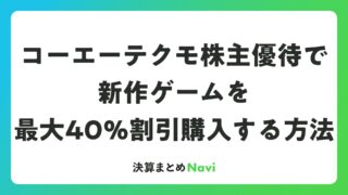 コーエーテクモ株主優待で新作ゲームを最大40%割引購入する方法 コーエーテクモホールディングス(証券コード:3635)は、歴史シミュレーションゲームやアクションゲームで知られる人気ゲーム企業です。この銘柄の魅力の一つが、株主向けに提供される自社商品40%割引の株主優待。毎年3月末の権利確定日に100株以... 決算書: 2026.03.20 決算書