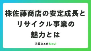 株佐藤商店の安定成長とリサイクル事業の魅力とは 株佐藤商店は、長期的な安定性とリサイクル事業を中心とした事業展開で、株式投資家から注目を集める企業です。創業以来の歴史と堅実な財務基盤が、資産運用の観点から魅力的な投資対象となっています。株佐藤商店の事業概要と強み株佐藤商店は、主に製鋼原料... 決算書: 2026.03.20 決算書