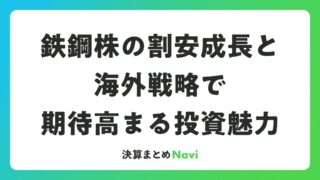 鉄鋼株の割安成長と海外戦略で期待高まる投資魅力 鉄鋼株は、株式投資家にとって安定した収益基盤と成長ポテンシャルを兼ね備えた魅力的な選択肢です。グローバルな需要拡大と企業戦略の進展により、2026年以降の回復が期待されています。鉄鋼業界の現状と回復の兆し鉄鋼セクターは、2025年に顕著な株... 決算書: 2026.03.17 決算書