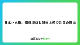 日本ハム株、増収増益と配当上昇で注目の理由 日本ハム株式会社は、国内食肉加工業界をリードする企業として、長年にわたり食関連事業を展開しています。この記事では、日本ハム株の基本情報から事業内容、業績動向、グループの取り組みまでを詳しく紹介します。株主や投資家の方... コラム: 2026.01.31 コラム