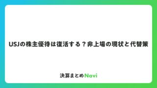 USJの株主優待は復活する?非上場の現状と代替策 ユニバーサル・スタジオ・ジャパン(USJ)を運営する企業に関する株主優待の情報を、テーマパークファンや株主優待に興味を持つ方に向けて詳しく解説します。USJ自体は現在上場しておらず、株主優待制度を導入していませんが、過去の状況や関連企業、業... コラム: 2026.01.31 コラム