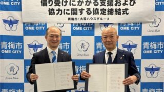 災害時等における一時避難場所等の借り受けにかかる支援および協力に関する協定書:大和ハウス工業株式会社、東京都青梅市と締結 ニュースの要約 大和ハウス工業が東京都青梅市と「災害時等における一時避難場所等の借り受けにかかる支援および協力に関する協定書」を締結 大和ハウス工業の開発した物流施設「DPL青梅」を災害時の一時避難場所や支援物資の一時保管場所として提供... ニュース: 2026.01.29 ニュース