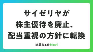 サイゼリヤが株主優待を廃止、配当重視の方針に転換 サイゼリヤは2024年7月10日に株主優待制度の廃止を発表し、株主への利益還元を配当金中心にシフトする方針を示しました。この変更は、公平性を重視した経営判断として注目を集めています。サイゼリヤの株主優待廃止の背景サイゼリヤはイタリアンファミ... 決算書: 2026.03.25 決算書