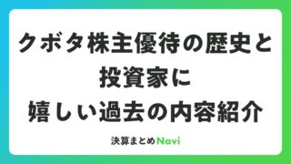クボタ株主優待の歴史と投資家に嬉しい過去の内容紹介 クボタは農業機械や建設機械で知られる大手企業で、株主優待の歴史も投資家に注目されています。過去に実施された記念優待は食品関連の魅力的な内容で、配当金との組み合わせが優待利回りを高めていました。現在は優待制度がないものの、安定した配当政策が長... 決算書: 2026.03.26 決算書