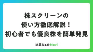 株スクリーンの使い方徹底解説!初心者でも優良株を簡単発見 株式投資において、膨大な銘柄の中から自分に合った優良株を選ぶのは大変な作業です。そこで活躍するのが株スクリーン(スクリーニングツール)です。このツールを使えば、投資スタイルにぴったりの銘柄を素早く絞り込み、効率的な資産運用を実現できます。本... 決算書: 2026.03.26 決算書