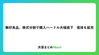 無印良品、株式分割で購入ハードル大幅低下 優待も拡充 「無印良品」で知られる良品計画は、2025年8月31日を基準日として、1株を2株に分割する株式分割を実施しました。この分割は2019年8月以来、約6年ぶりの実施となります。株式分割は企業の成長段階において重要な施策であり、多くの投資家にとっ... コラム: 2026.01.28 コラム
