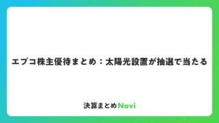 エプコ株主優待まとめ:太陽光設置が抽選で当たる エプコの株主優待は、環境に配慮した独自の抽選式制度として注目を集めています。この制度は、100株以上を保有する株主を対象に、年2回の権利確定日で応募可能なユニークな内容です。グループ事業の強みを活かし... コラム: 2026.01.27 コラム
