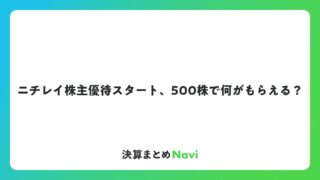 ニチレイ株主優待スタート、500株で何がもらえる? ニチレイが新たに導入した株主優待制度とは食品大手のニチレイが2026年1月8日に株主優待制度の導入を発表しました。これまで株主優待制度を設けていなかった同社が、新たに株主還元の仕組みを整備することになります。この制度は2026年3月末日を基... コラム: 2026.02.03 コラム