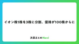イオン株1株を3株に分割、優待が100株からに イオン株式会社が実施した株式分割は、株主の皆さまにとって注目すべき企業動向の一つです。この記事では、イオンの1株を3株に分割する取り組みを中心に、その背景や株主優待の変更点、株式分割の一般的な仕組みな... コラム: 2026.01.27 コラム