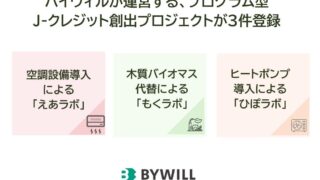 株式会社バイウィル:J-クレジット創出にて「空調」「木質バイオマス」「ヒートポンプ」の 3分野でプロジェクト登録が完了 ニュースの要約 株式会社バイウィルが運営する「プログラム型」J-クレジット創出スキームに新たに3つのプロジェクトを登録 「空調」「木質バイオマス」「ヒートポンプ」の3分野でCO2排出削減やバイオマス燃料の導入を支援 参加者の初期費用や... ニュース: 2026.01.27 ニュース