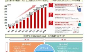 MUFGのiDeCo:三菱UFJ信託銀行株式会社が『MUFGのiDeCo』に「スリムコース」を新設 ニュースの要約 三菱UFJ信託銀行が個人型確定拠出年金(iDeCo)に「スリムコース」を新設 運営管理手数料が0円で、eMAXIS Slimなどコストパフォーマンスに優れた商品を用意 専用アプリ「D-Canvas」を通じて簡単に資産管... ニュース: 2026.02.03 ニュース