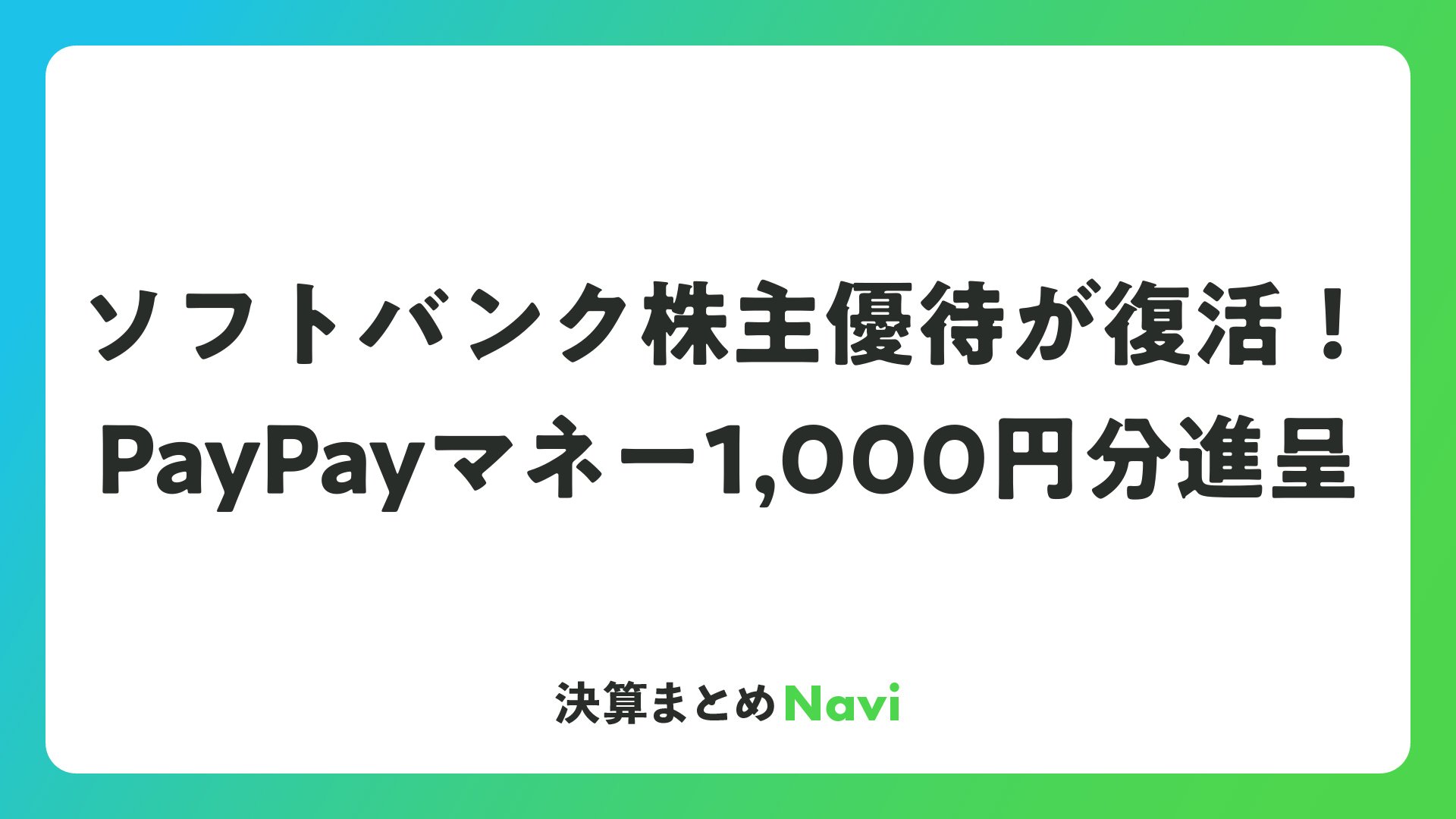 ソフトバンク株主優待が復活!PayPayマネー1,000円分進呈をまとめました