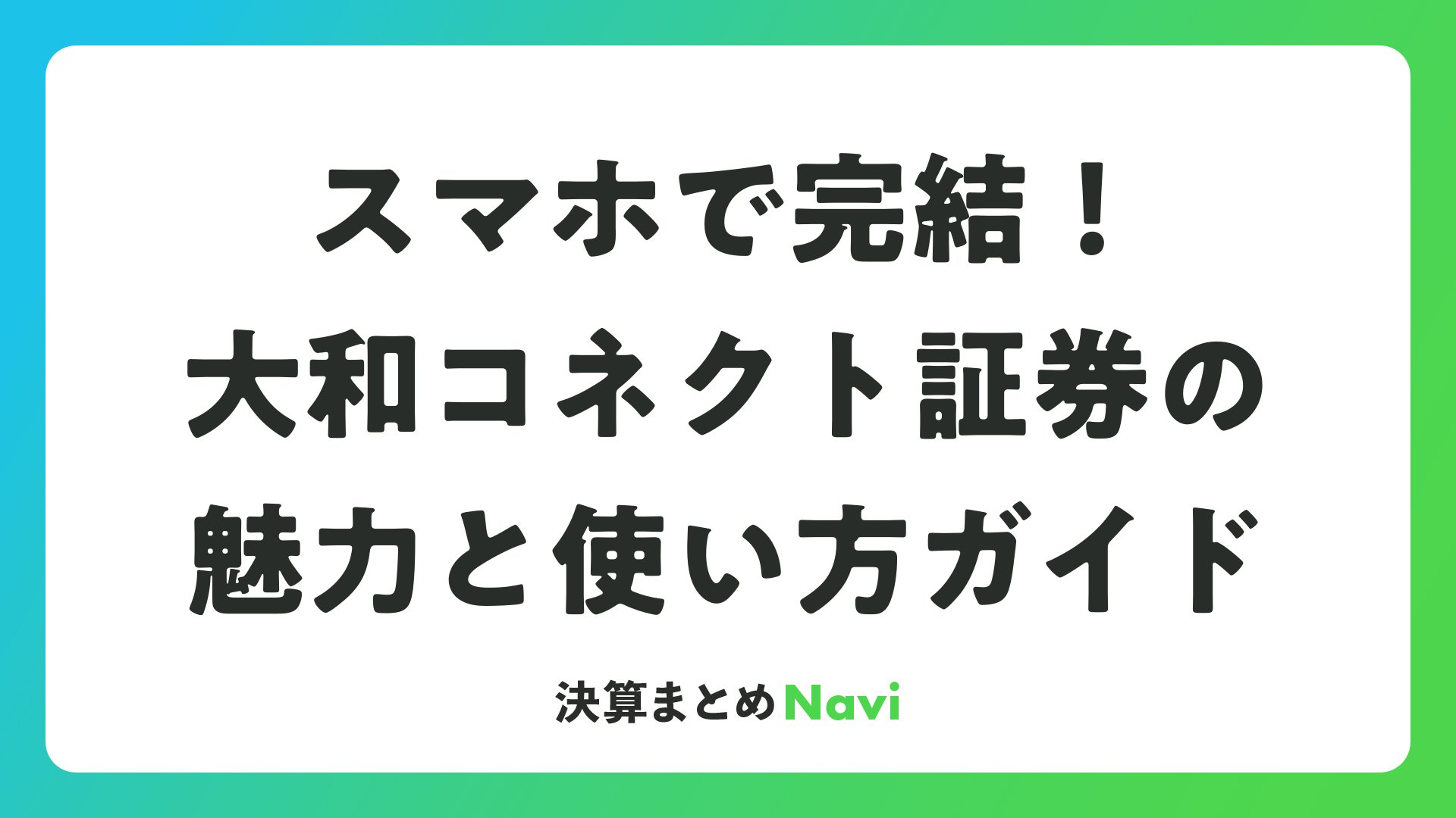 スマホで完結!大和コネクト証券の魅力と使い方ガイドをまとめました