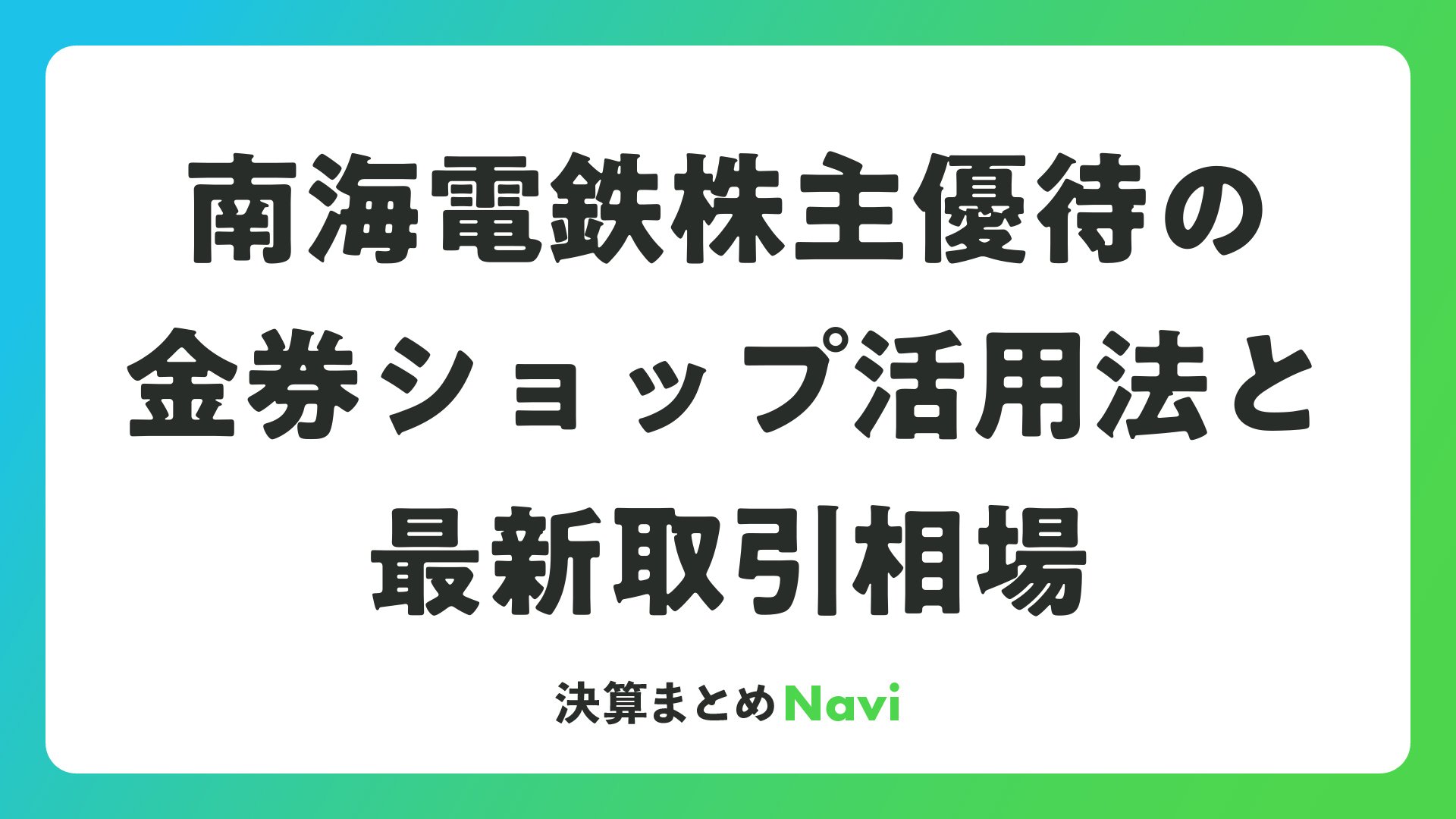 南海電鉄株主優待の金券ショップ活用法と最新取引相場をまとめました
